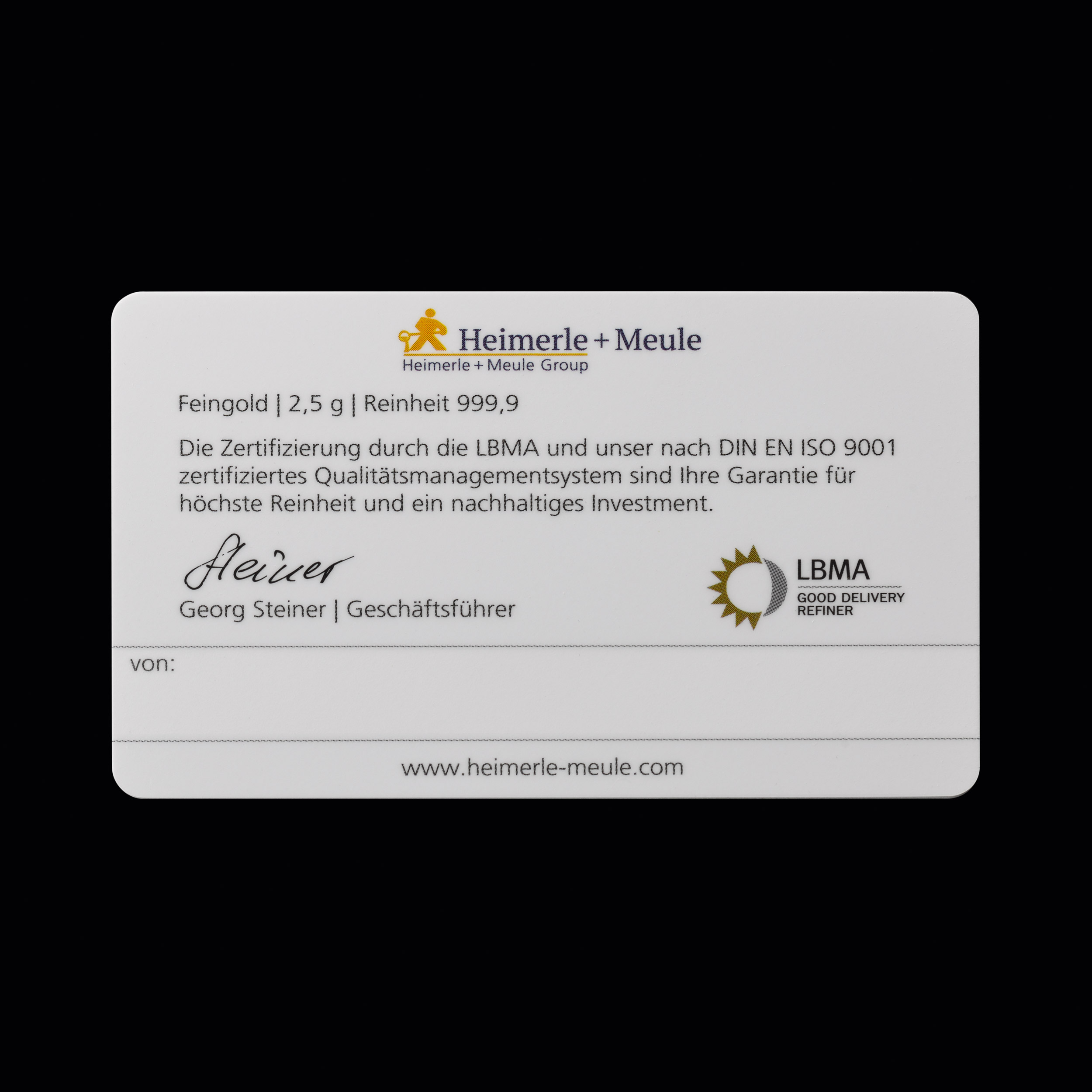 Unsere FineCard im Format einer Kreditkarte ist in unterschiedlichen Designs gestaltet und besticht durch ihre hochwertige Optik. Die implantierten Barren aus 999,9 Feingold sind garantiert von höchster Reinheit, was unsere Zertifizierung durch die LBMA eindeutig belegt. Auf Anfrage haben Sie die Möglichkeit, das Design der Karte sowie die Anzahl der implantierten Barren selbst zu bestimmen und somit Ihre eigene FineCard zu kreieren.