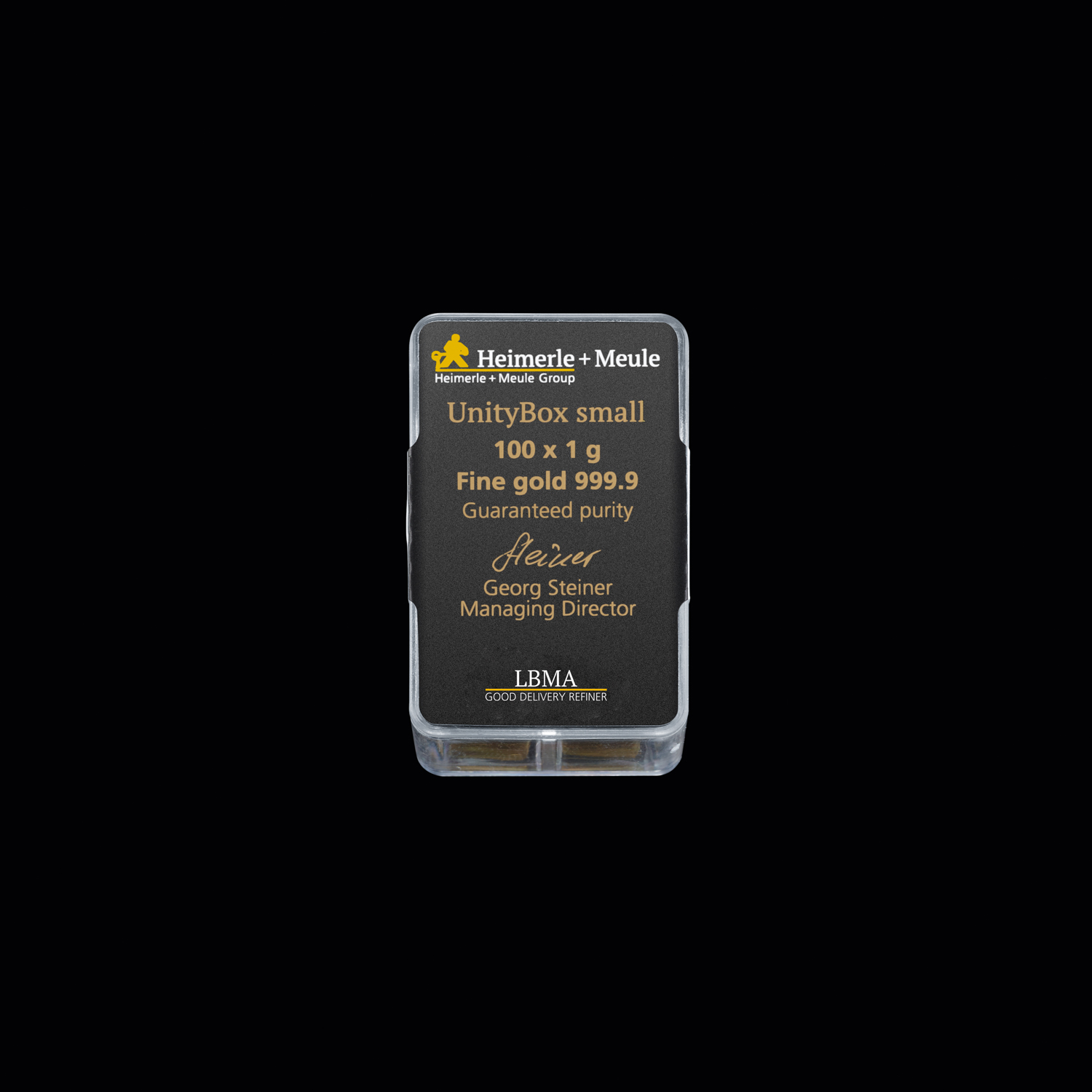 Wertbeständigkeit, im Einklang mit einem hohen Maß an Flexibilität: Für Menschen, die klug in die Zukunft investieren und dennoch offen für Veränderungen bleiben wollen, ist unsere UnityBox die perfekte Lösung. Diese formschönen 1 g Barren aus 999,9 Feingold sind in den Varianten 100 x 1 g sowie 250 x 1 g erhältlich. Natürlich können Sie unsere stilvollen 1 g Barren auch einzeln beziehen.